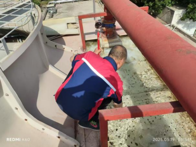 十四、能源服务部为确保夏季供冷,清洗北区机房冷却塔出水口,调节中水阀门,维修新机房热水机电控确保空调、热水安全供应。
