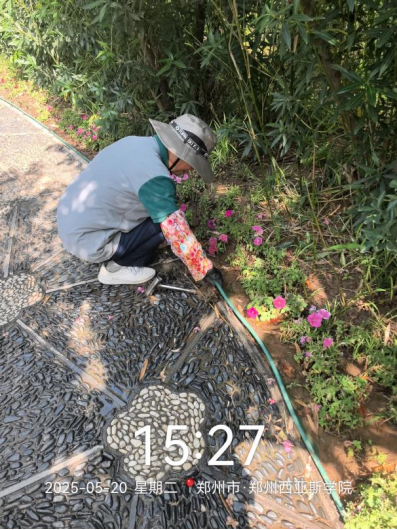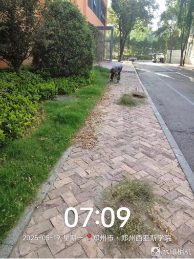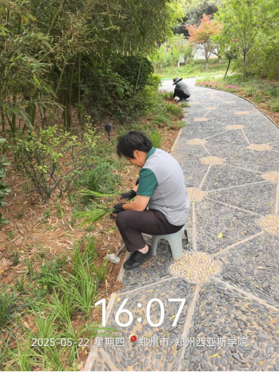 十一、对校园绿化进行了隔水带安装、病虫害防治打药、草花栽种区域翻土整地、除草剂打药、干枝断枝清理、落叶清理、麦冬栽种、杂草清理等工作。