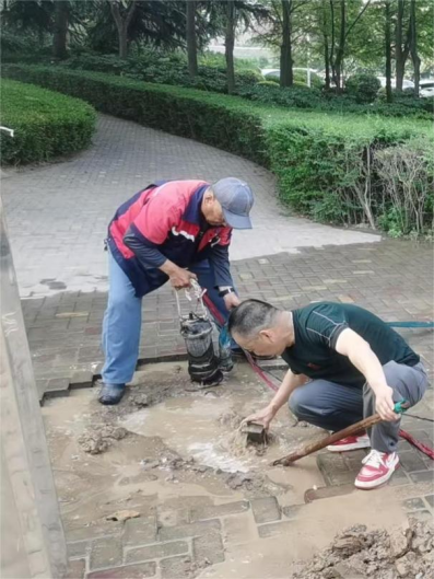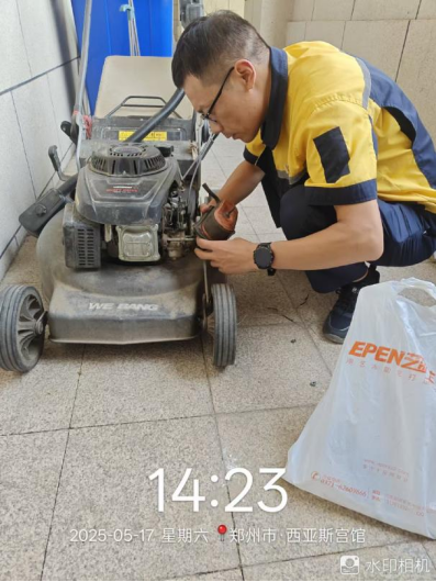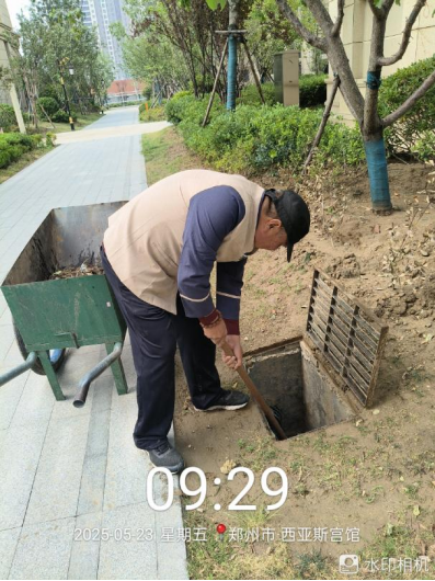 十三、宫馆项目开展了绿篱修剪、维修草坪机、维修入户门锁、天台排水道清扫、单元后门放挡水沙袋、雨水篦子清掏、空置房巡查并更换巡查表等工作。