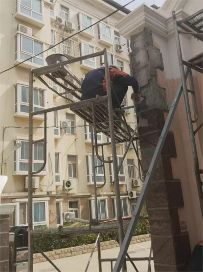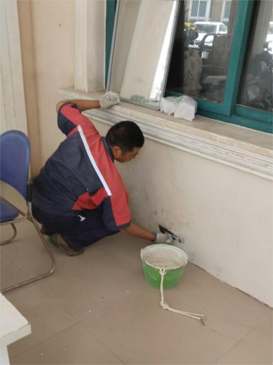 七、维修园丁楼门口构件,粉刷墙面。