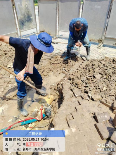 二、校园东北角中水管道改造工程:中水管道铺设完成50%。