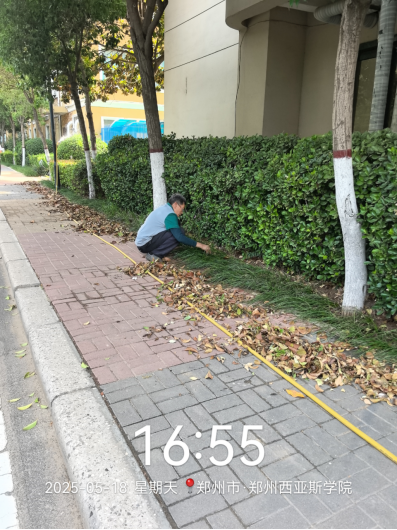 十二、对校园环境进行了16号楼西侧外墙冲洗、歌舞剧院清洁、死角卫生清洁、招聘会环境保障、道沿杂草清除、机器人大赛活动现场保障、垃圾桶擦拭、篮球赛环境保障、脉动演唱会环境保障、水系清洁等工作。