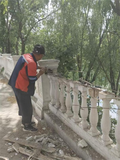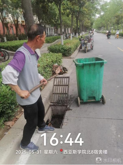 十二、对校园环境进行了地面污渍冲洗、落叶清吹、清掏雨水篦子、水系清洁、投放鼠药、消杀、玻璃清洁、垃圾桶擦拭等工作。