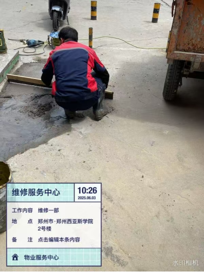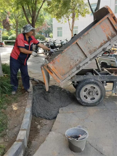 二、校内积水点雨水改造工程:21号楼西侧隧道入口处路面破除,机械进场破除完成60%。