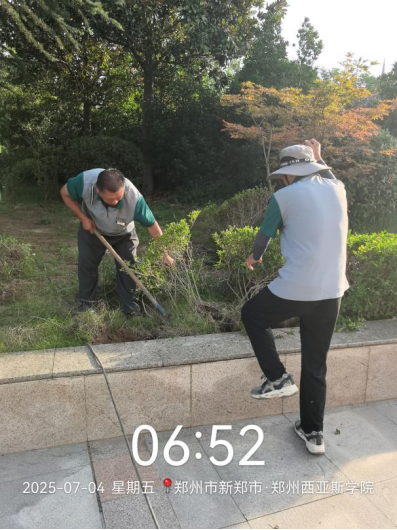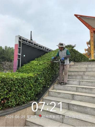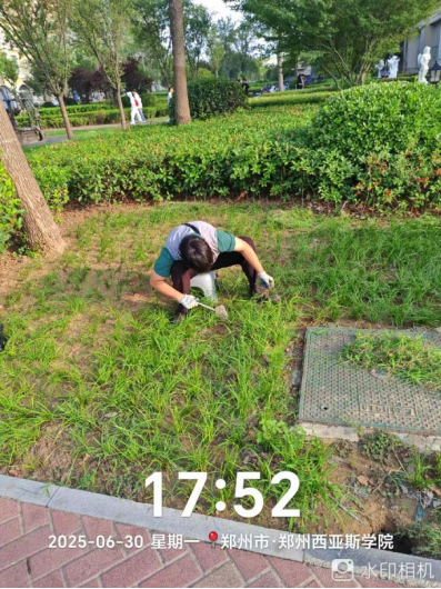 十八、对校园绿化进行了草坪修剪、草坪清理、除草剂打药、绿篱修剪、乔木修剪、移栽苗木、杂草清理等工作。