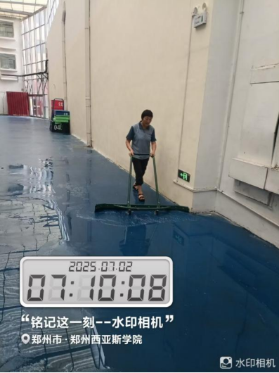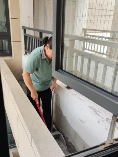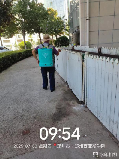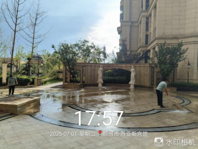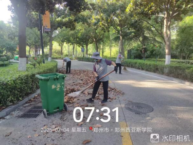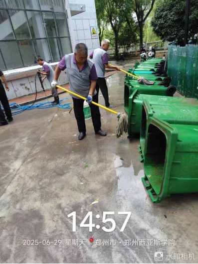 十九、对校园环境进行了地面淤泥冲洗、清吹落叶、19号楼地下车库清洁、玻璃清洁、雕塑冲洗、大雨天气防内涝工作、河道落叶清理、垃圾站点及生活垃圾桶冲洗、消杀、雨水篦子清掏等工作。