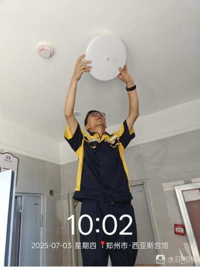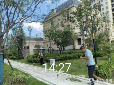 二十、宫馆项目开展了排查水管漏水点、公区照明维修、查看飘窗渗水问题、园区干枝死树处理、连廊卫生清洁、马蜂窝处理、园区草坪整修、园区积水清扫等工作。