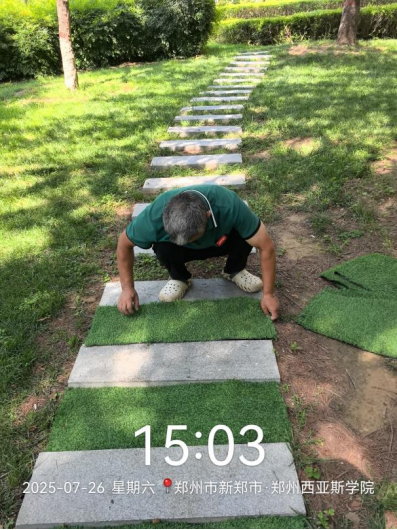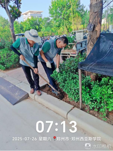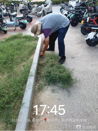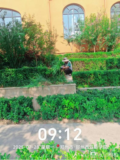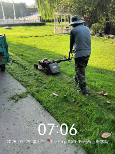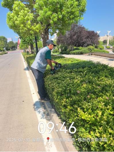十八、对校园绿化进行了草坪修剪、病虫害防治打药、石板路美化、绿篱修剪、乔灌木修剪、浇水养护、移苗补苗、杂草清理等工作。
