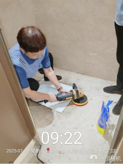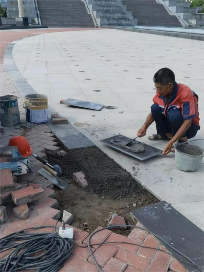 三、图书馆一层地面石材维修工程:拆除完成90%;开始进场铺设石材。