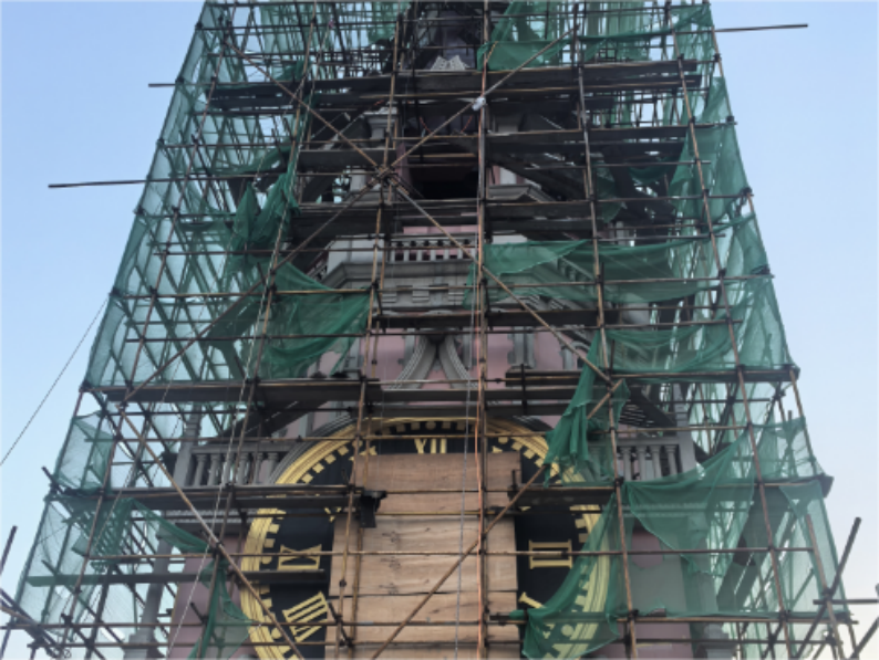 八、莫斯科红场塔楼维修工程:GRC构件安装完成80%;原墙面基层处理(打磨、喷涂乳液完成),批外墙腻子完成50%。