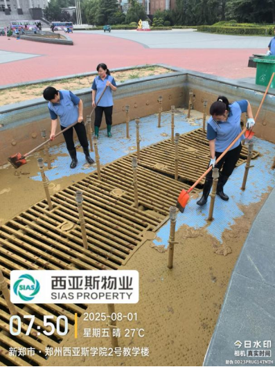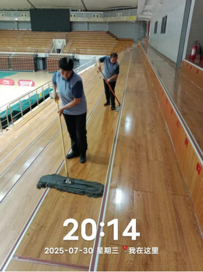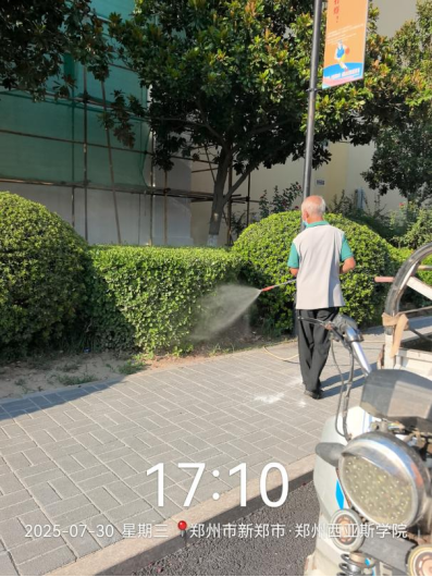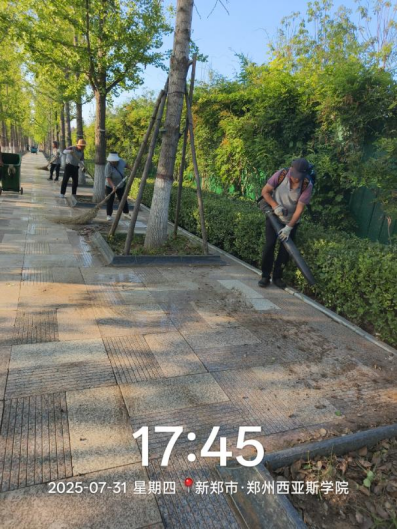 十九、对校园环境进行了便池地面清洁打磨、中央水系清洁、除草、篮球赛环境保障、清吹落叶、五餐3楼地毯清洁、消杀、中国园茶室深度清洁等工作。