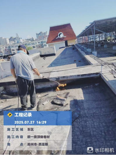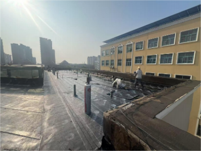 九、屋面防水改造工程:东一东二第二层防水完成90%。