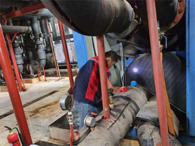 二十一、能源服务部暑期对北区机房3号主机更换水流开关,对空调主机进行拆机维修,更换西区机房空调补水表,更换游泳馆DN150过滤器进行更换,对各区机房配电设施及主机运行情况进行巡检,确保空调、热水安全供应。