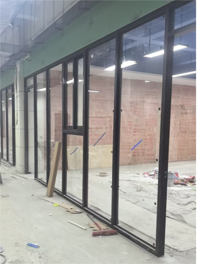二、6号教学楼改造工程:玻璃隔断完成;吊顶完成。