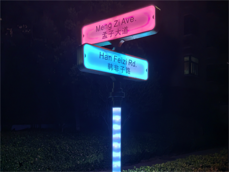 三、全校标识牌安装工程:路牌已安装完成,调试;楼宇牌安装完成90%;总导视基础安装完成。