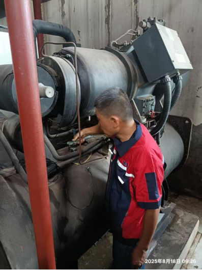 二十一、能源服务部暑期对北区机房空调主机进行维修,丝头老化进行更换焊接,对各区机房中水过滤器进行清洗,对配电设施及主机运行情况进行巡检,确保空调、热水安全供应。