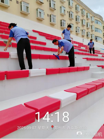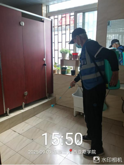 十一、对校园环境进行了冲洗地面污渍、积水清理、清除老化墙贴宣传、水系打捞、四害消杀、田径场场地清洁、迎新期间环境保障等工作。