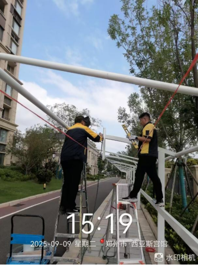 十二、宫馆项目开展了便民晾衣绳安装、5-西电梯轿厢保护板松动问题处理、2#楼散水坡下水管整改、楼栋公区日常保洁、园区日常保洁、地库日常保洁、下雨前沙袋放置、露台积水清理等工作。