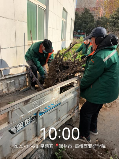 十、对校园绿化进行了草坪防护围栏整修、麦子栽种场地整理、大树涂白、落叶清理、麦冬分栽、乔灌木修剪 、未成活苗木清理、月季捆扎定型等工作。