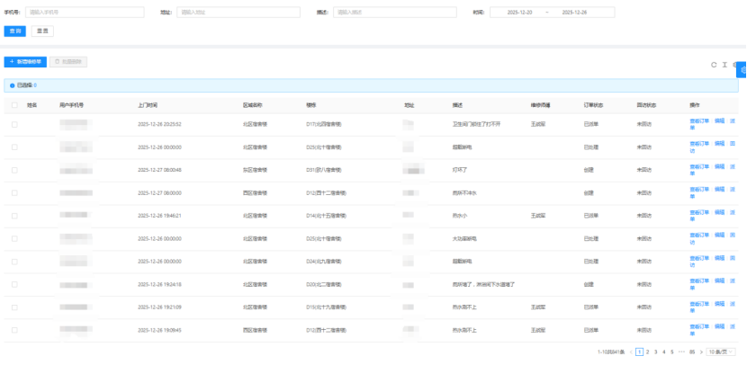 三、12月20日-12月26日20:45,客服部共接到841条报修并及时安排人员处理。