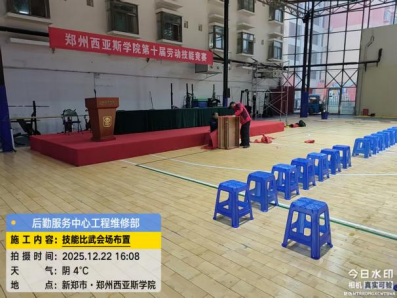 一、圆满完成郑州西亚斯学院第十届劳动技能竞赛后勤保障工作(场地布置、场地收尾)。