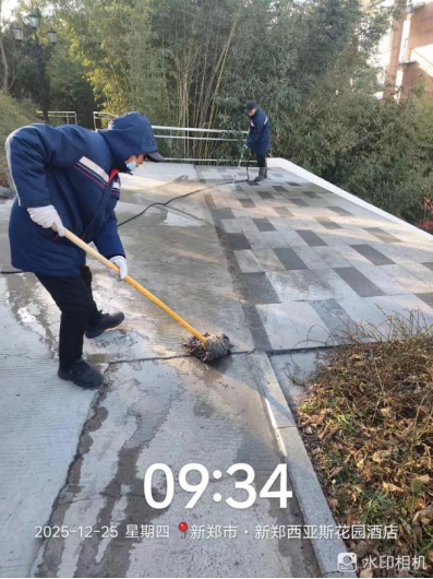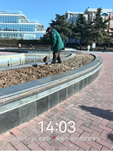 十、对校园环境进行了车棚清洁、地面污渍冲洗、附属物擦拭、高空除尘、标识牌擦拭、死角清理、卫生间清洁冲洗、行政楼精细保洁等工作。