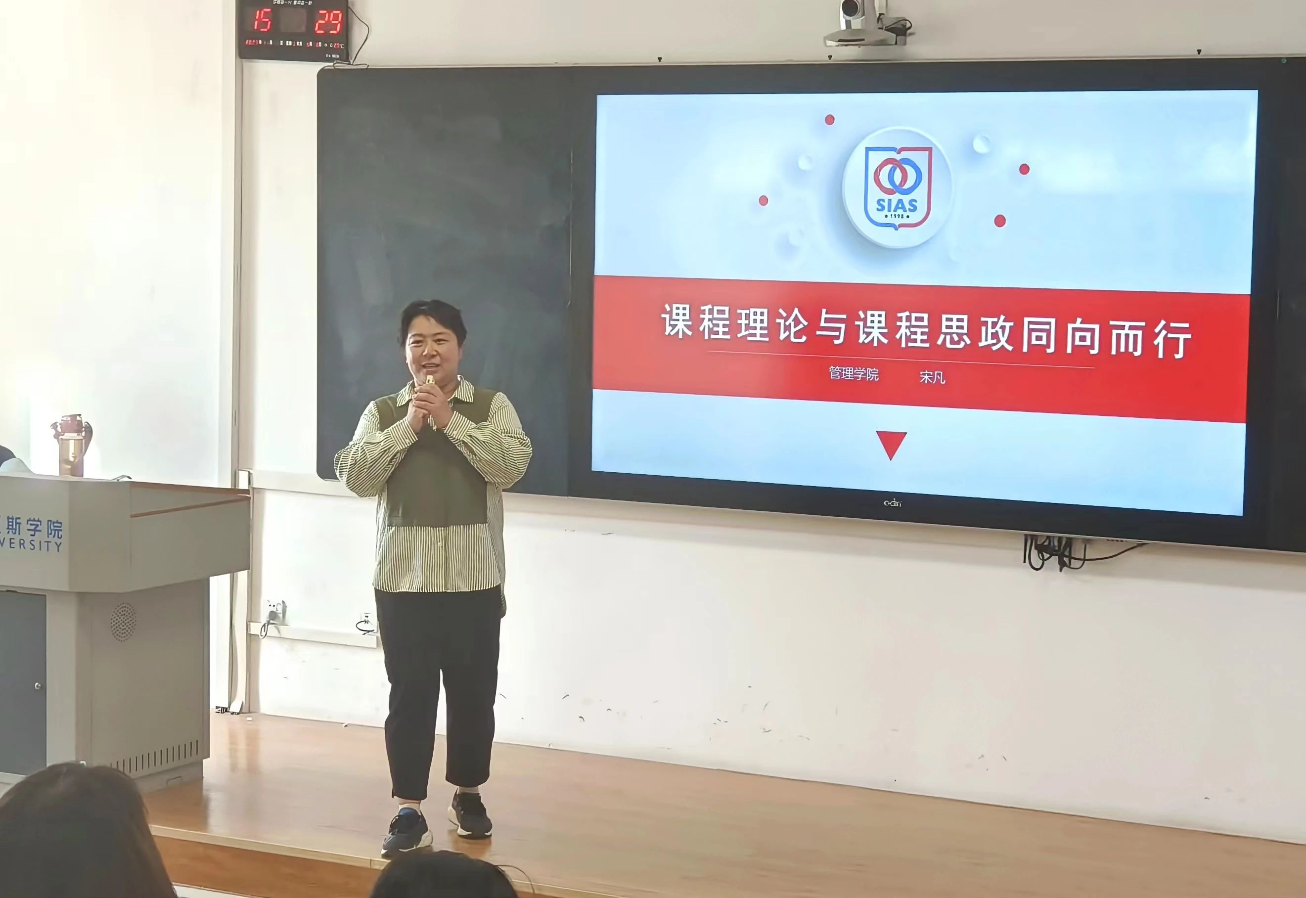 此次专题培训管理学院中青年骨干教师宋凡以“课程思政理论与实践---《课程理论与课程思政同向而行》”为主题,从新教师如何开展课程思政教学,提高育人效果入手,围绕课程思政的溯源、课程思政的设计、课程思政元素发掘、思政元素的融入方式及课程思政落实中应注意的问题等方面展开了详细的剖析,同时对于高校专业课课程思政理论与建设方法进行了介绍。在本次讲座中,宋凡老师强调了,课程思政是一种教育理念,也是一种教育方法,它起到了“立德树人、润物无声”的价值引领,需要广大一线教师在教育教学中注重对学生进行顺其自然的思政渗透。作为一名教师,需要把思想政治工作贯穿到教育教学全过程当中,掌握课程思政与思政元素融合的方法及实施路径,自觉地把立德树人教育教学工作扎实开展。
