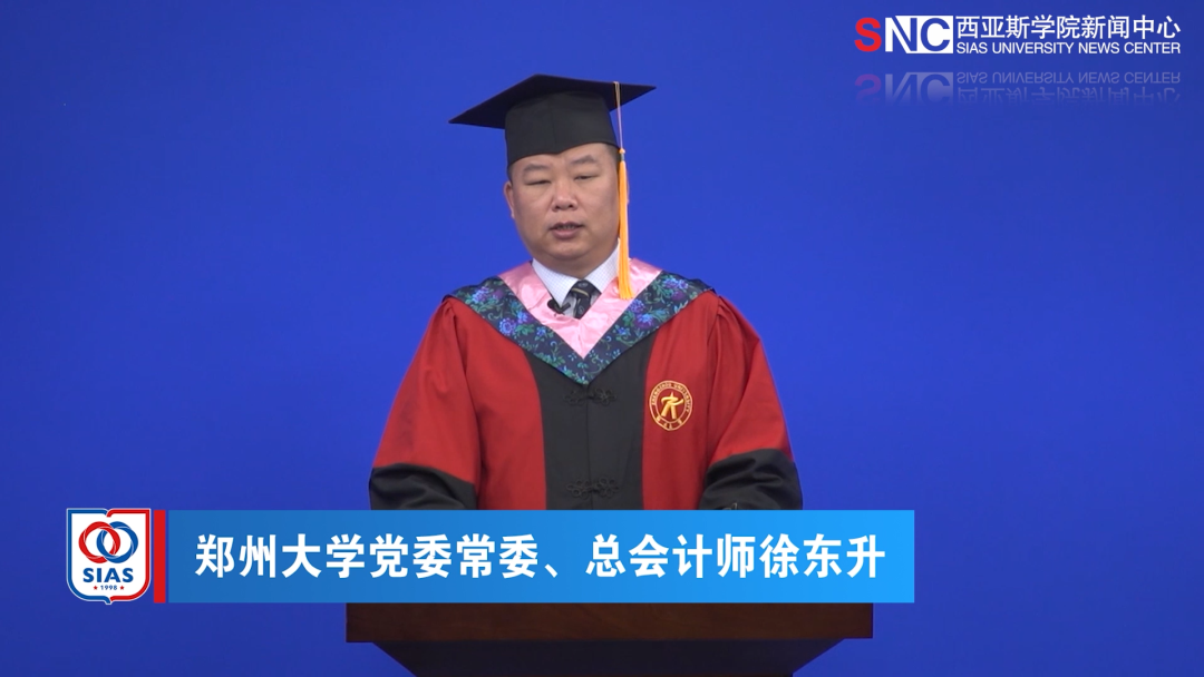 郑州大学党委常委、总会计师徐东升宣布郑州大学西亚斯国际学院2022届毕业生毕业