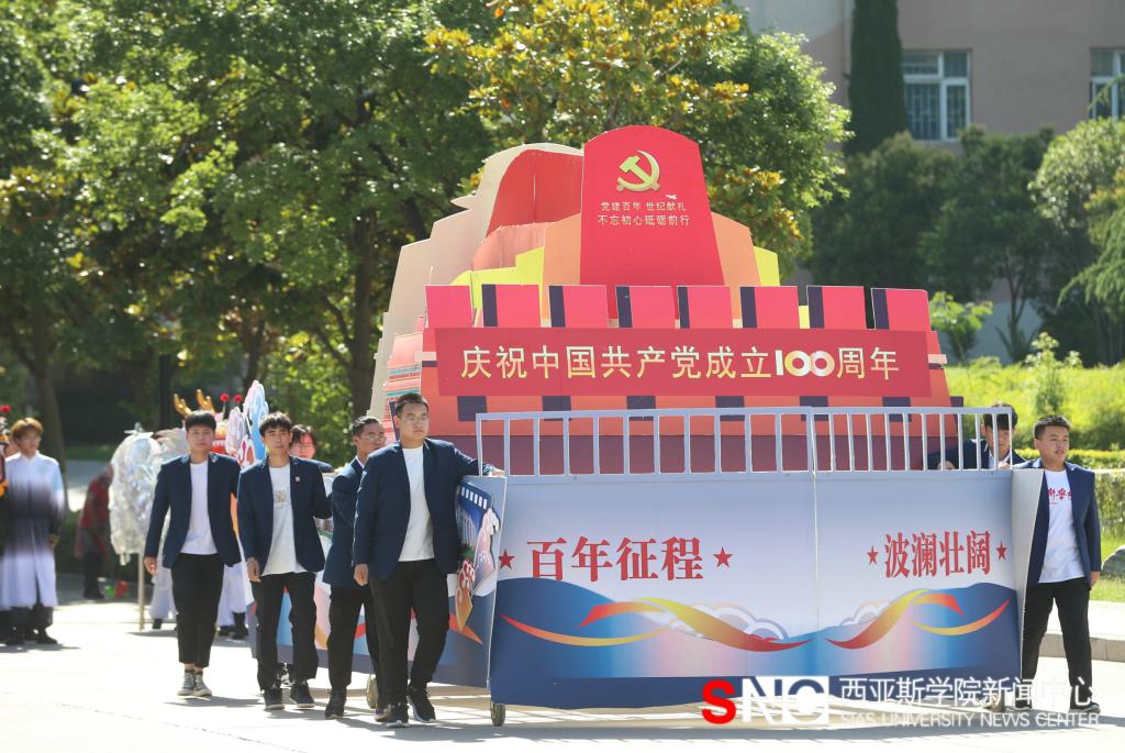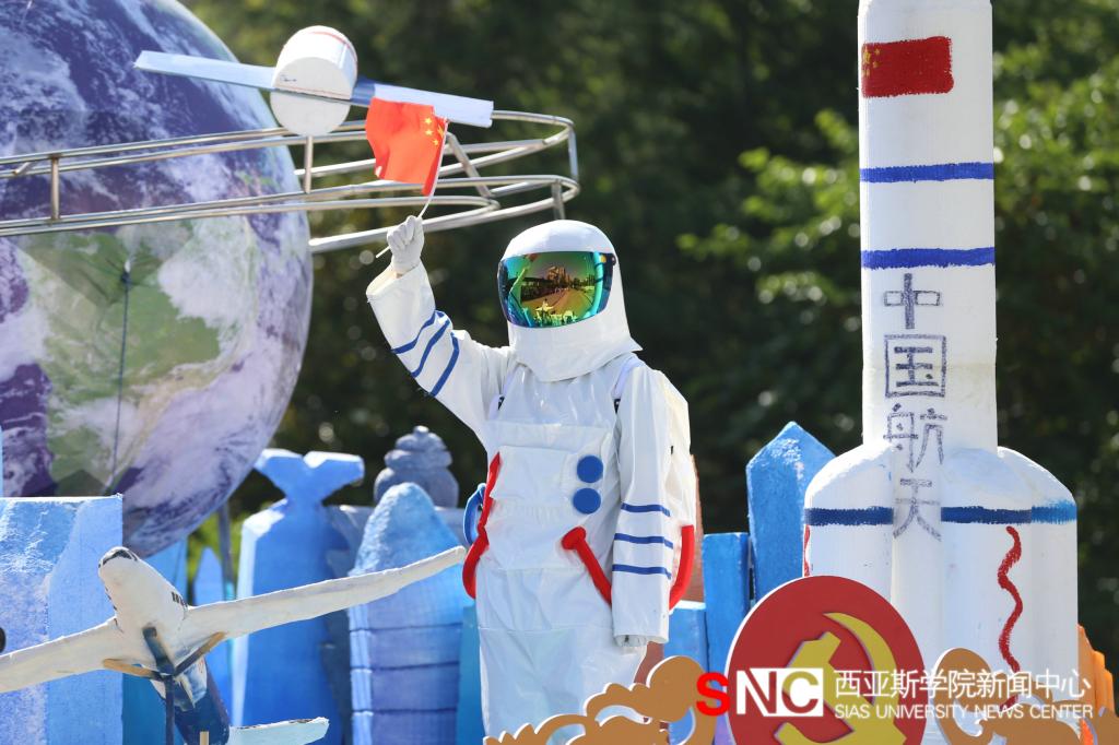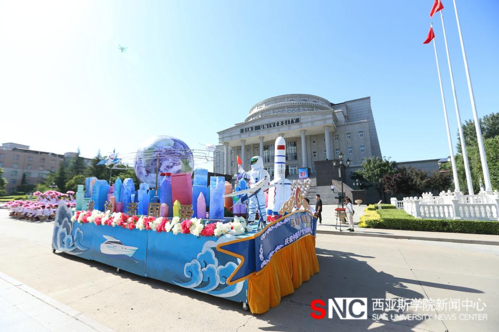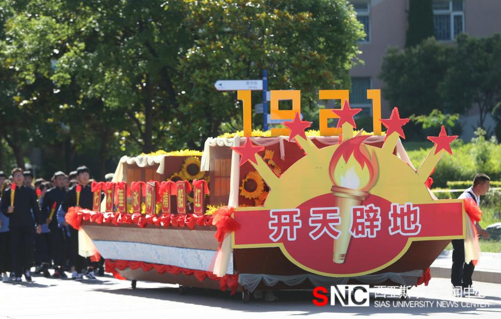 上午八点半,伴随着激昂的音乐,大型花车巡游表演拉开了访校日的序幕,从“开天辟地”花车到“浴血奋战”花车、从“建国大业”花车到“改革开放”花车、从“与时俱进”花车到“伟大复兴”花车,一路展示了中华民族从站起来、富起来到强起来的伟大飞跃。一辆辆创意奇特、看点十足的花车,展现了我校学子对新生活的美好憧憬,对新征程的坚定信念和对新发展的满怀信心。
