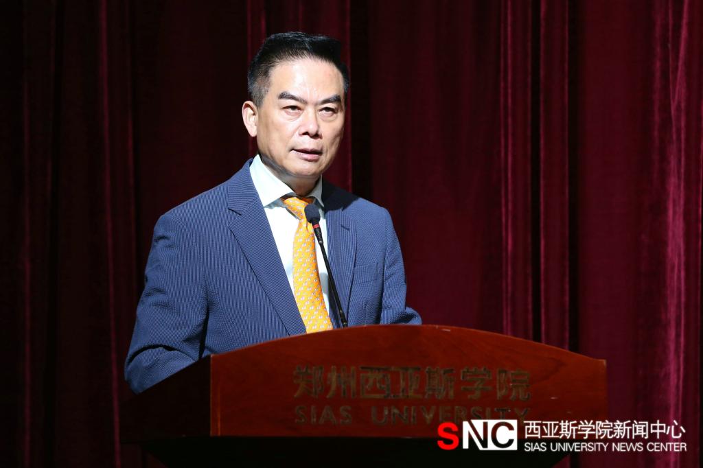 全体起立奏唱中华人民共和国国歌后,陈肖纯理事长介绍来宾并致欢迎辞。他讲到,西亚斯始终秉持国际化办学理念,访校日作为我校坚持开放办学的最具代表性活动,已逐渐成为对外展示的窗口,希望通过活动的举办进一步达到开放办学与社会融合办学的目的。他表示,西亚斯将继续扎根中原大地办教育,做好产教融合项目,落实立德树人教育任务,为社会发展贡献力量。