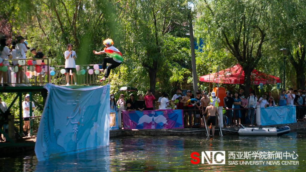 下午,在学校西区湖畔举行的鸟人大赛现场,参赛选手们热情似火,激情四射,以脑洞大开的独特创意展示了当代大学生的魅力与风采。在校友峰会现场,陈肖纯理事长与返校校友亲切交谈,回顾过去、展望未来。优秀校友代表、北京泡泡玛特文化创意有限公司创始人、董事长王宁与大家进行了分享,他讲到,大家要不忘初心、脚踏实地,成为自己的一束光。