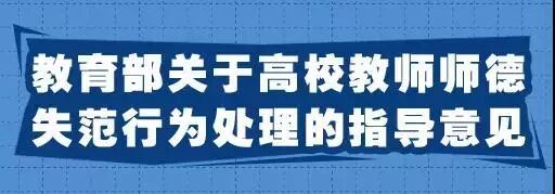 为进一步规范高校教师履职履责行为,落实立德树人根本任务,弘扬新时代高校教师道德风尚,努力建设有理想信念、有道德情操、有扎实学识、有仁爱之心的高校教师队伍,现就教师违反《高等学校教师职业道德规范》《教育部关于建立健全高校师德建设长效机制的意见》和《新时代高校教师职业行为十项准则》等规定,发生师德失范行为的处理提出如下指导意见。