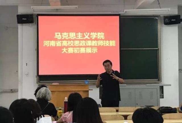 为迎接河南省委高校工委、河南省教育厅举办的全省高校思想政治理论课教师教学技能大赛,根据河南省教育厅关于思想政治理论课教师教学技能大赛的有关要求(河南省教育厅【2018】542号文),我校马克思主义学院在前期组织老师演讲预选赛的基础上,遴选出四位青年教师参加9月初举行的全省高校思政课教师教学技能大赛。2018年8月29日下午,在1-303教室举行了思政课教师教学技能初赛展示。学院领导、各教研室主任和学院教师代表担任比赛评委,学院全体教师参加了本次教学技能大赛观摩活动。大赛初赛展示由我校校长助理兼马克思主义学院院长郭学德教授主持。