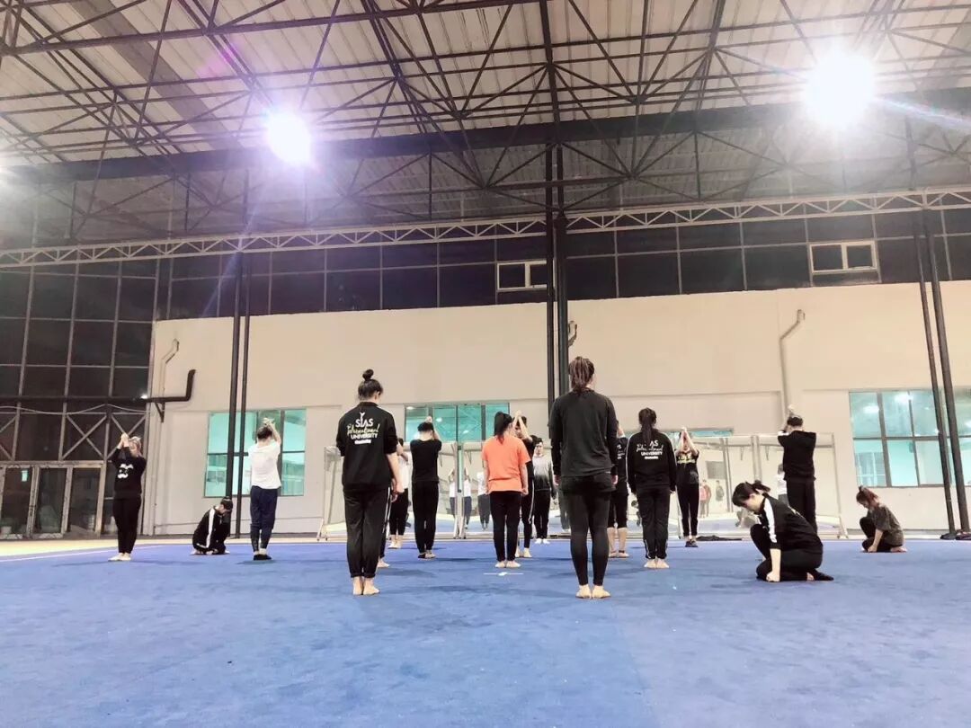 据成爽教练介绍,前期备赛时间非常紧张,有的同学还带着伤病坚持训练,他们都顶着很大的压力去完成这次比赛。在一个多月的训练时间里,队员们每天都是等到训练场关灯了才回去。周一到周五每天早上六点到八点要进行两个小时的跑操,上午的文化课学习结束后,下午还有从两点到十点长达八小时的训练,周六周日则需要进行十几个小时的高强度高密度训练。