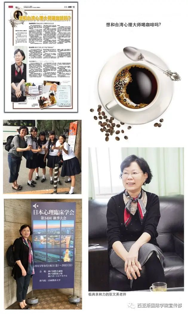 张文美:我在台湾曾担任过6年的人体试验委员会委员,负责心理咨商。来到西亚斯以后,我觉得这一块应该继续做下去,于是在每周三下午设立了“张老师时间”,针对学生们存在的问题和困惑来协助他们,让学生能够更加积极地面对生活和学习。