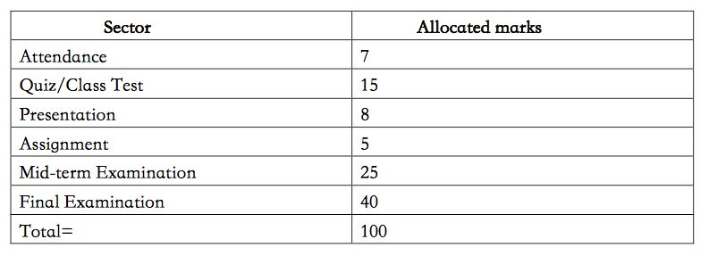 DIU大学对学生的考核是以形成性评价和终结性评估为主。考核包括三次小测验,期中考试和期末考试。如果学生缺勤达到20% 将不允许参加期末考试。成绩以百分制计算,具体如下: