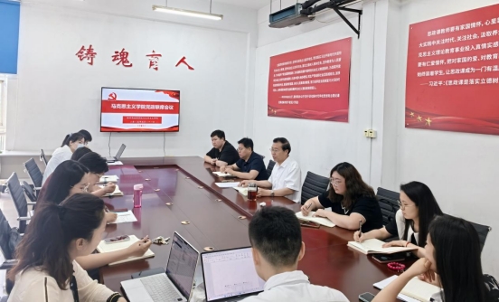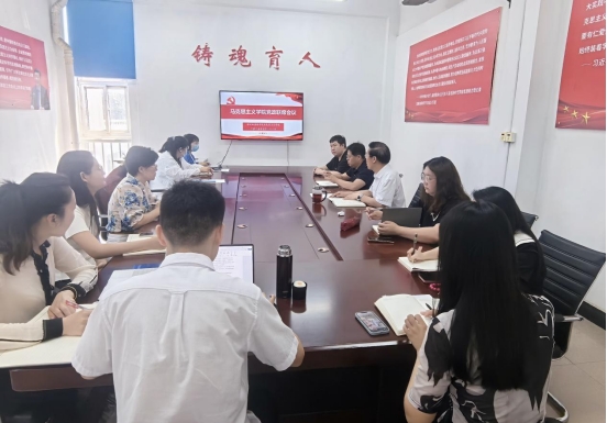 2025年5月21日上午,马克思主义学院在2-406会议室召开春季学期党政联席会议。会议的主题是:总结学院本科教学合格评估工作,对下一步学院工作进行安排部署。会议由学院院长郭学德主持。各教研室主任及学院党总支委员、6个基层党支部书记参加了此次会议。