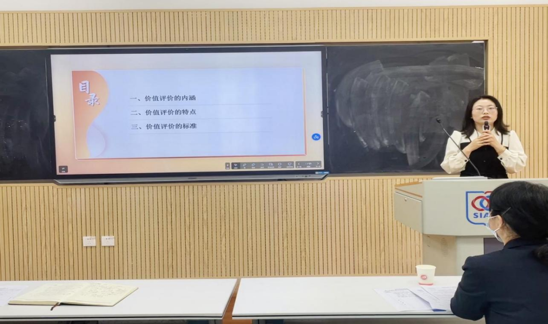 王燕格老师讲授的主题为《价值评价及其特点》。她通过对价值评价的内涵、特点和价值评价根本标准的讲解,使同学们理解价值评价虽然具有一定的主观性,但不能忽略其客观性;价值评价要以真理为根据,要有利于人类主体的生存和发展,与社会历史发展的客观规律相一致,推动历史进步,以最广大人民的需要和利益为根本。通过对价值评价相关内容的讲解,她呼吁和倡导当代青年大学生要坚守和弘扬社会主义核心价值观,做社会主义事业的建设者和接班人。王燕格的教学深入浅出、通俗易懂,通过生动、具体的案例,把一些深奥的哲学概念定义讲得明明白白,听后令人醍醐灌顶、茅塞顿开。