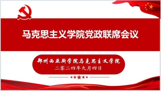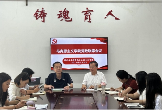 2024年9月4日上午,马克思主义学院在2-406会议室召开了秋季学期党政联席会议。会议由学院院长郭学德主持,党总支副书记余粮,各教研室主任及学院党总支、6个基层党支部全体委员参加了此次会议。