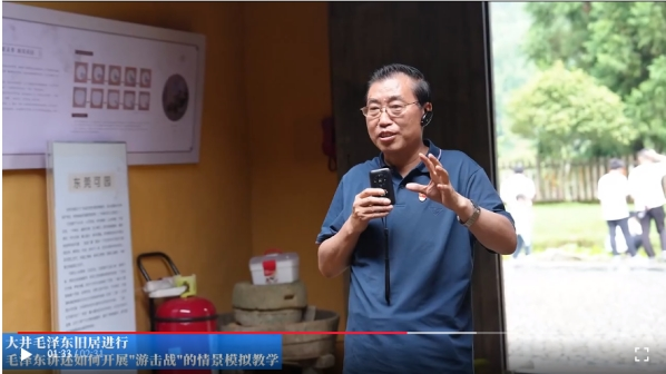 7月26日下午,在大井毛泽东旧居,带班老师讲解了毛泽东、朱德在大井村开展革命斗争的事迹。随后,由研修班学员代表进行了毛泽东讲述如何开展“游击战”的情景模拟教学。毛泽东讲:“与敌人进行斗争,不仅要学会打仗,还要学会打圈圈,敌人来了,先牵引着敌人打几个圈圈,在打圈圈过程中发现敌人的薄弱环节,再集中力量歼灭敌人”。正是在井冈山斗争期间,毛泽东总结出了著名的“敌进我退,敌驻我扰,敌疲我打,敌退我追”十六字游击战指导方针。