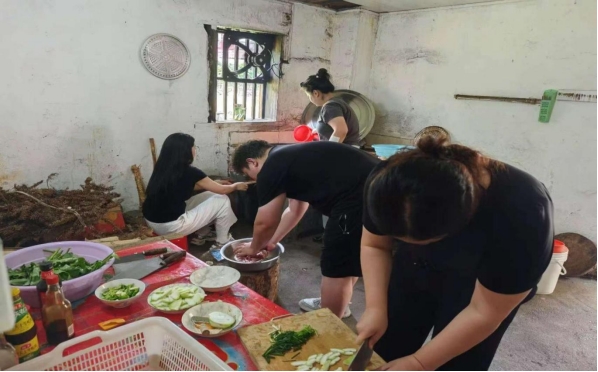 7月25日中午,按照研修课程安排,研修班学员分为 4 个小组,深入农户家中,自做红军餐。在农户家中,学员们自己动手用柴火生火煮饭,切菜炒菜。经过一个多小时的忙碌,学员们品尝着自己亲手做的饭菜,格外香甜。在做饭进餐过程中,学员们还与乡亲们进行了亲切交谈,开展了调查研究,了解了农户脱贫致富奔小康的有关情况,真正度过了“红军的一天”。