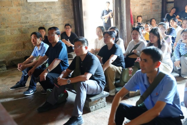研修班学员在“大仓会见”旧址进行访谈教学