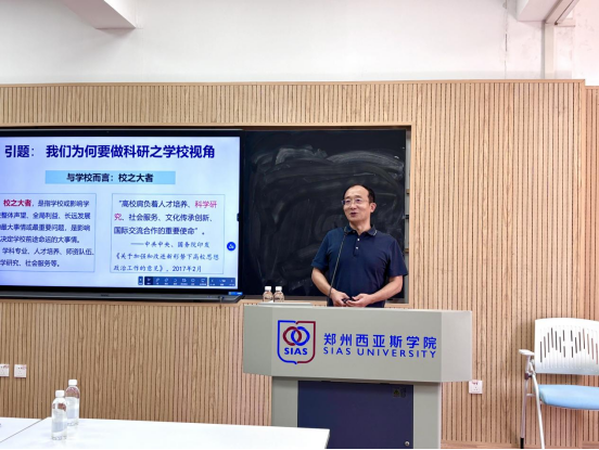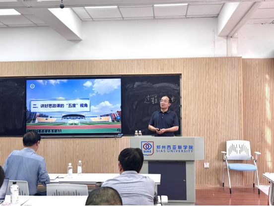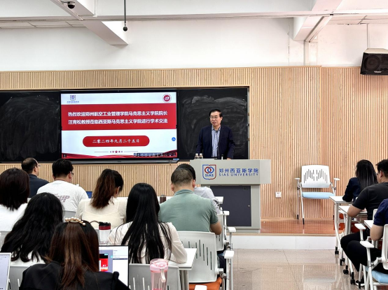 为深入贯彻落实习近平总书记对思政课建设的重要指示精神,进一步加强高校之间的学术交流,提升马克思主义学院教学科研水平。2024年9月25日,我院邀请郑州航空工业管理学院马克思主义学院院长汪青松作《浅谈科研项目申报中的“术”与“学”》学术报告。学术报告会由马克思主义学院院长郭学德教授主持,全体思政课教师参加报告会进行聆听学习。