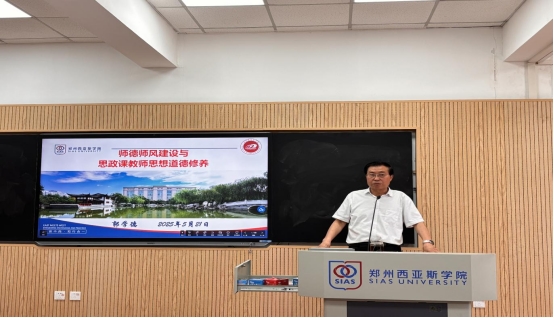 最后,郭学德强调,西亚斯马院思政课教师要按照习近平总书记的要求,努力争做新时代高校优秀思政课教师。一要加强学习,重视思想修养。要不断提高思想认识和政治觉悟,强化高校思政课教师身份认知和职业规范认同。二要注重修养,提升道德境界。要对高校思政课教师提出较一般高校教师更高的道德要求;思政课教师要取法乎上、见贤思齐,不断提高道德修养,提升人格品质,严格遵循高校教师职业道德规范。三要强化自律,做到心中有戒。高校思政课教师既要遵守教学纪律,也要遵守政治纪律和政治规矩;要自重、自省、自警、自励,做到心中有戒,心中有纪,心中有法。四要勤勉敬业,做好经师人师。高校思政课教师不仅要传道授业解惑的“经师”,更要做教书育人、为人师表的“人师”;要以德立学,以德立身,以德施教,以德育人。
