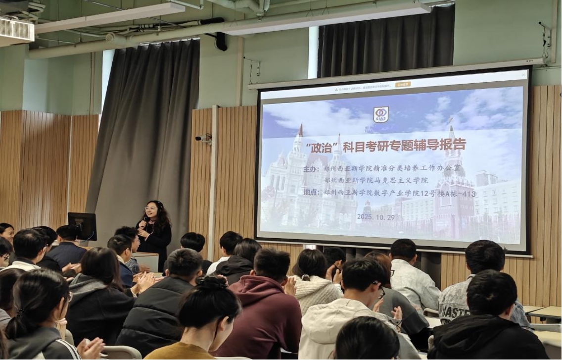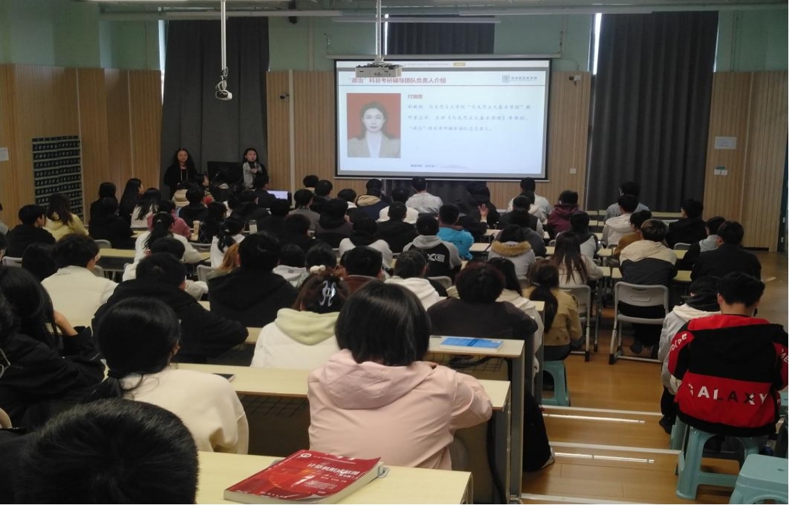 为了更好地落实学校精准分类培养工作要求,进一步提高我校教学质量和考研过线率,10月29日下午,在数字技术产业学和新质住宿书院的大力支持配合下,马克思主义学院举办的2026年“政治”科目考研专题辅导报告,在数字技术产业学院C120413教室成功举办。新质住宿书院党总支副书记党玉瑶作辅导动员致辞,马克思主义学院“政治”科目考研辅导团队负责人付瑞霞作辅导团队专家情况介绍和辅导报告情况说明。