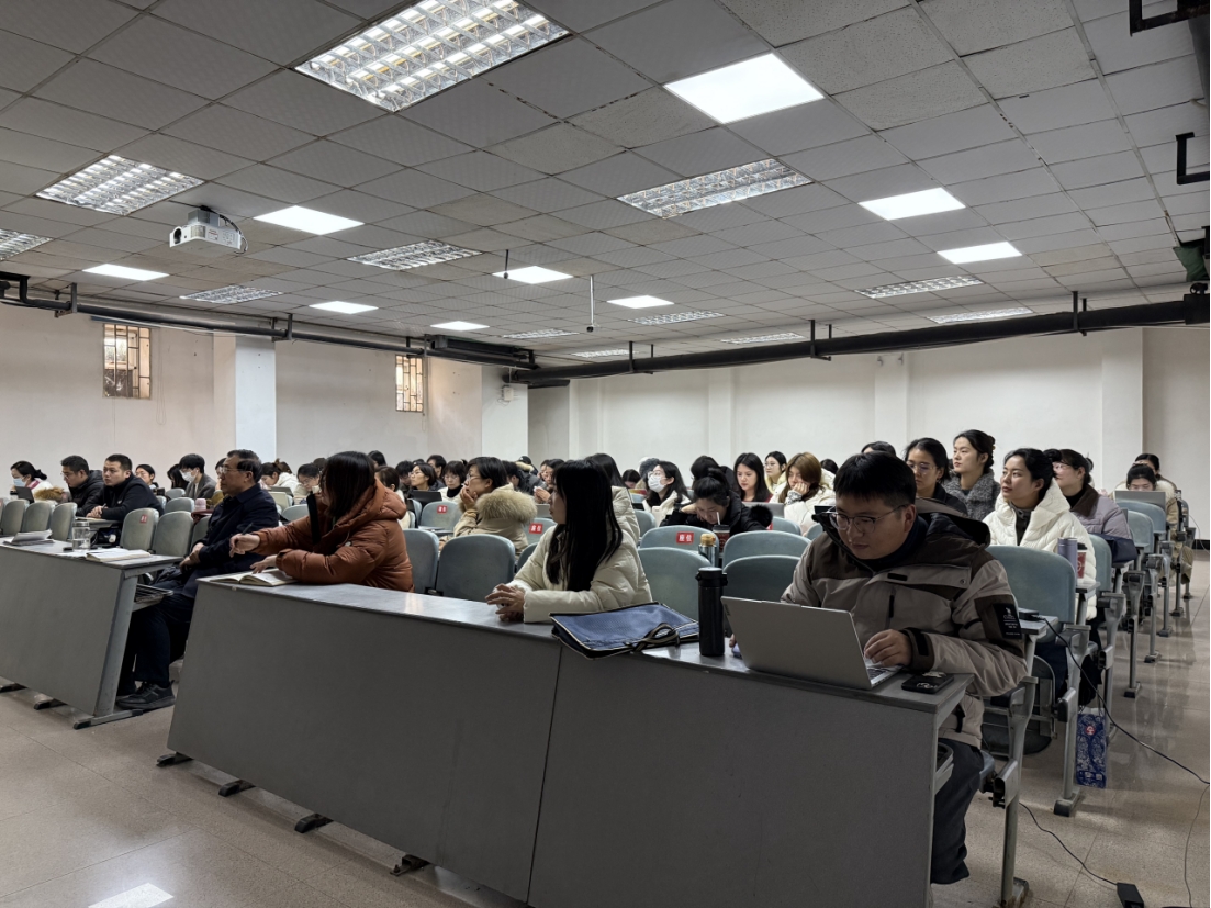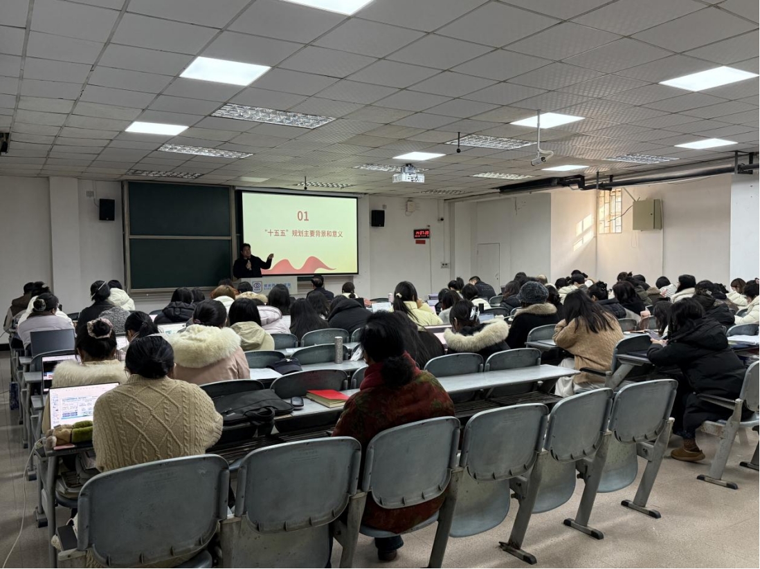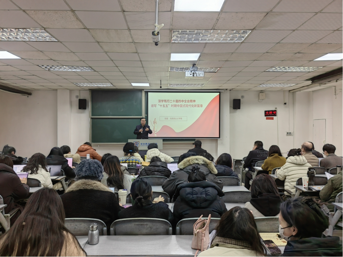 为进一步深入学习领会党的二十届四中全会精神,推进党的二十届四中全会精神融入思政课教学,2025年12月24日下午,我院在T02-202智慧报告厅举办党的二十届四中全会精神专题宣讲报告会,院长助理班超副教授作题为《深学笃行党的二十届四中全会精神 谱写“十五五”时期中国式现代化新篇章》的宣讲报告。报告会由院长郭学德教授主持,学院全体教师参加了此次宣讲报告会。