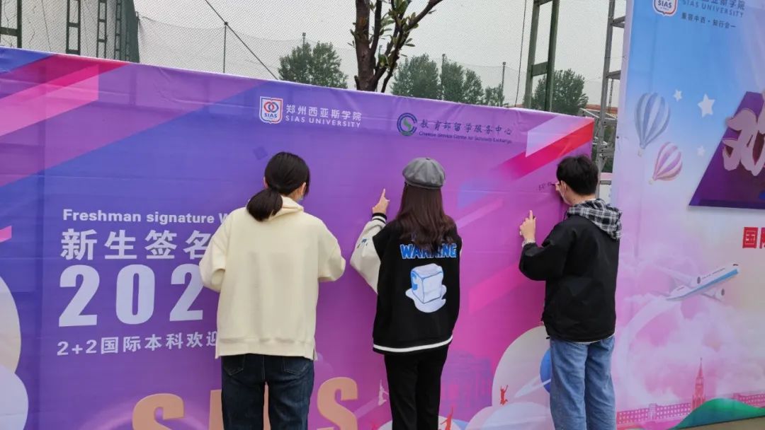 宿舍楼旁有醒目的彩旗、横幅、签名墙,书院内有为2021级新生准备的迎新礼包,里面不仅有宗教知识宣传手册、宗教政策法规明白卡、考研攻略以及各种零食,还有启贤专属的西亚斯周边挂件。