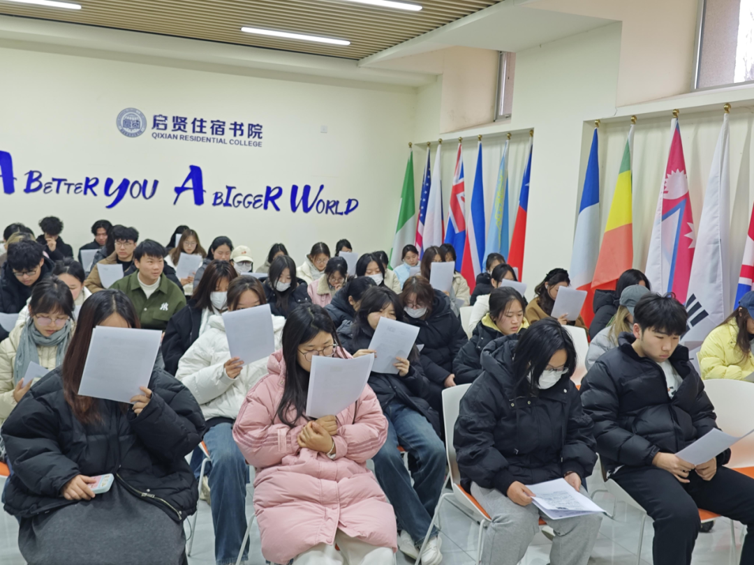 2025年2月19日下午,启贤住宿书院在B008举行了一场主题为“Tell yourself you’re great”(告诉自己,你很棒)的英文朗诵活动。此次活动由我院育人导师周永贞组织,旨在通过朗诵表达自信,激发同学们对英语学习的热情,并通过积极的心理暗示,鼓励大家相信自己、不断进步。
