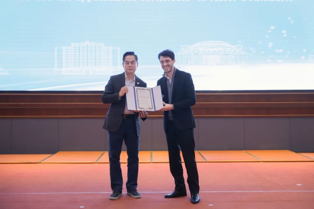 启动仪式后,学生代表花晨淏以《我的模联生活》为题,分享模拟联合国活动实践经验。Aziel Goulandris作《走进联合国》主题讲座,系统解析国际组织运作机制及青年参与全球事务的实践路径。陈肖纯代表学校向Aziel Goulandris颁发客座教授聘书。
