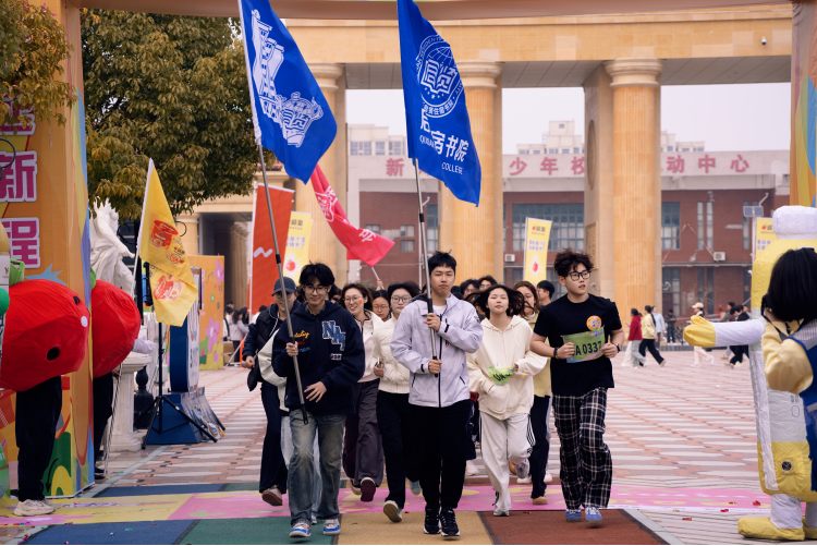 随着发令枪响,启贤住宿书院师生方阵高举院旗,以饱满的姿态冲出起跑线。育人导师与学生并肩前行,或组成“领跑小组”破风开路,或结成“互助小队”彼此鼓励。赛道沿途春意盎然,师生们步伐坚定,额间汗水与春日暖阳交相辉映。